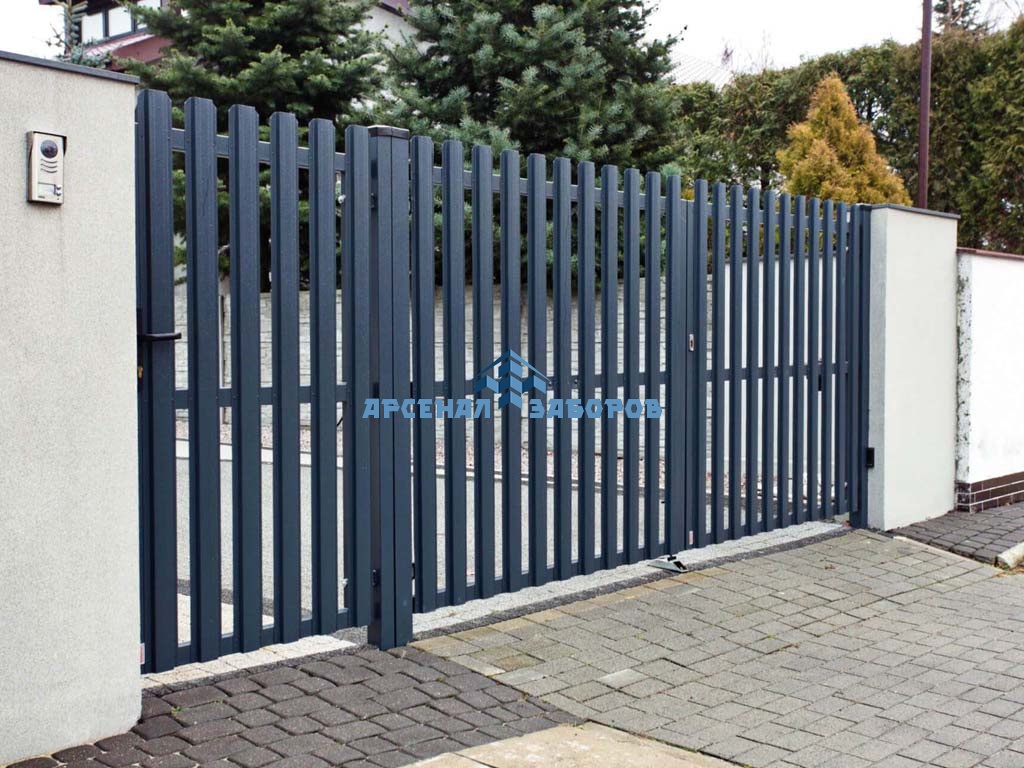Ворота распашные из евроштакетника - пример 6